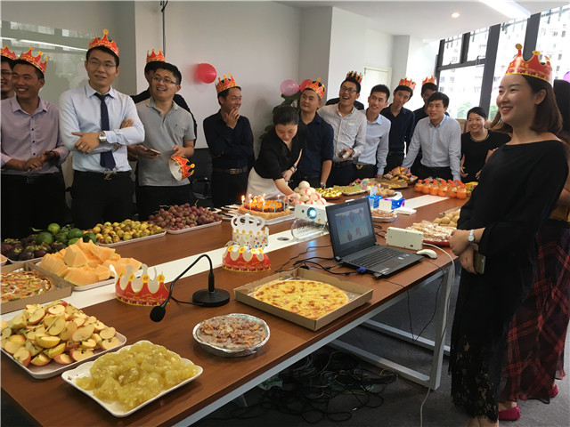 2016年9月14日,華威公司在千花島營銷中心會議室舉辦了簡單而熱鬧的“2016年第三季度員工生日會”,人資行政部精心準(zhǔn)備了實(shí)用的禮物和豐盛的美食,為26位壽星慶祝。